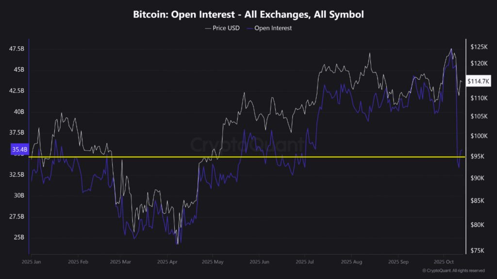 • Open interest in Bitcoin dropped by $12 billion, marking a wide-ranging structural unwind that wiped out too much leverage in derivatives exchanges.
