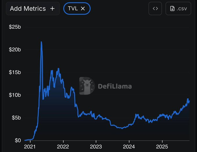 BNB Chain’s total value locked has surged toward the $10 billion mark, underscoring a strong rebound in DeFi activity and growing investor confidence as liquidity steadily returns to one of the largest blockchain ecosystems.