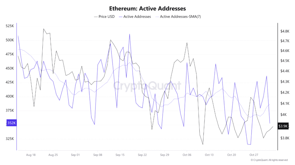 - Ethereum active addresses dropped 24% since August, showing reduced network demand and lower user interaction across decentralized applications.