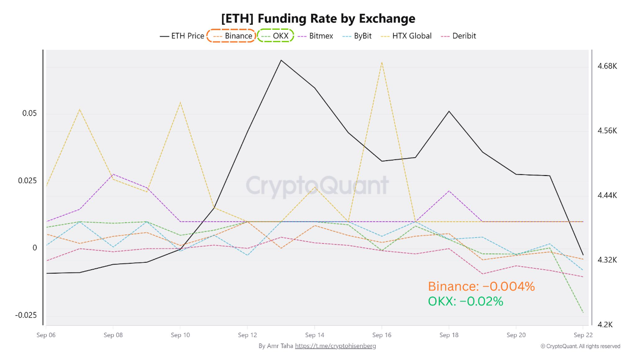 - Funding rates turned negative across Binance, OKX, Bybit, and others, showing shorts gained control while long traders exited positions at higher levels.