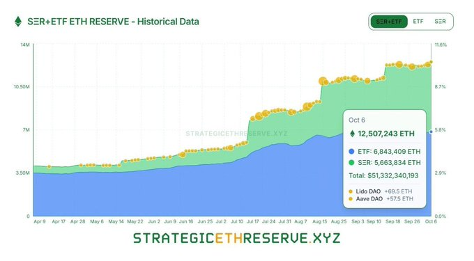 ETF and treasury holdings currently account for 12.5 million ETH, approximately 10.31% of the total supply. This concentration of Ethereum reduces available market supply, which may amplify price movement once a breakout occurs.