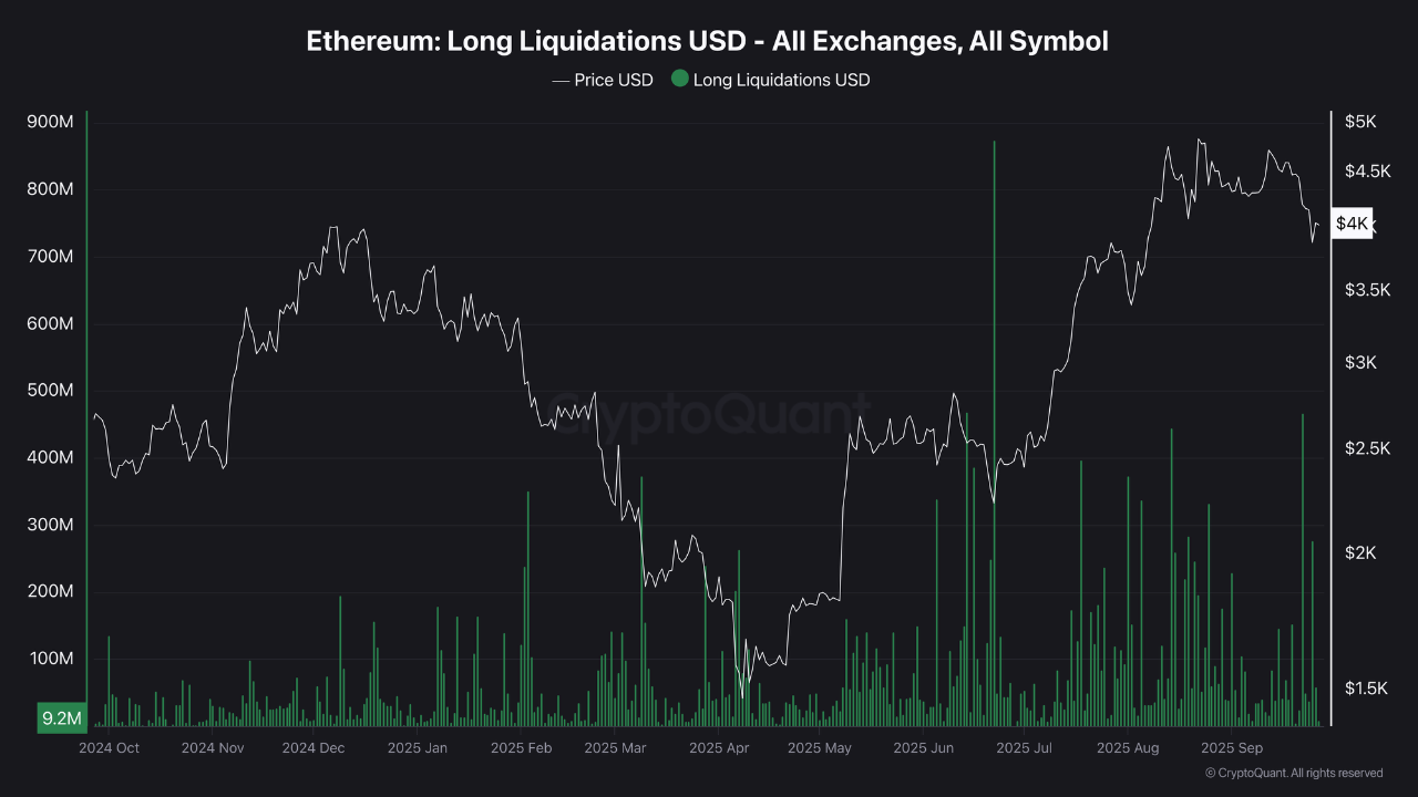 Market focus now rests on the $4,060 resistance level. After $4.3 billion in crypto liquidations last week, traders view this level as critical for Ethereum’s short-term direction, balancing between weak momentum and potential breakout conditions.