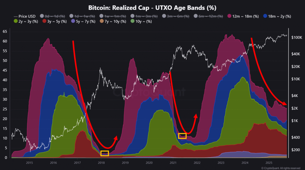 Complementing this short-term strength, Crypto Dan highlighted that Bitcoin’s broader bull market remains intact. In earlier cycles, the final stages of bullish phases were marked by a sharp decline in long-term held BTC—those retained for more than a year—as older coins were sold and liquidity surged.