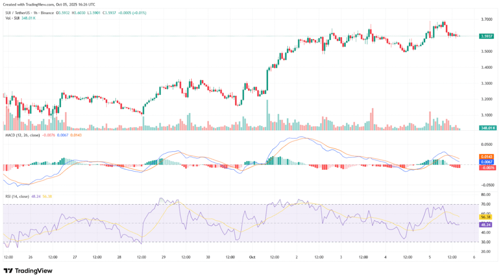 Price action has slowed despite the recent gains, volume has also dipped and indicators like MACD and RSI are showing a pause in momentum. Still, if bulls manage to hold the $3.50 support and push past $4.00 with conviction, it could be the start of another strong upward leg in SUI’s trend.